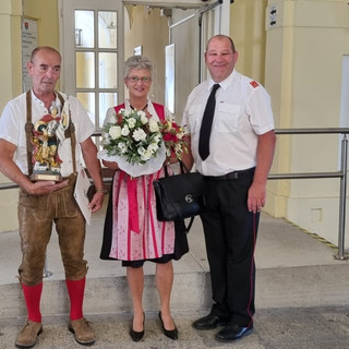 Eine Abordnung unserer feuerwehr unter Führung des Kommandanten gratulierte am Freitag, den 22.07. unserem Ehrenhauptlöschmeister Karl Ackermann und seiner Susi zur Vermählung. Wir wünschen ihnen alles Gute und viel Glück am gemeinsamen Lebensweg!